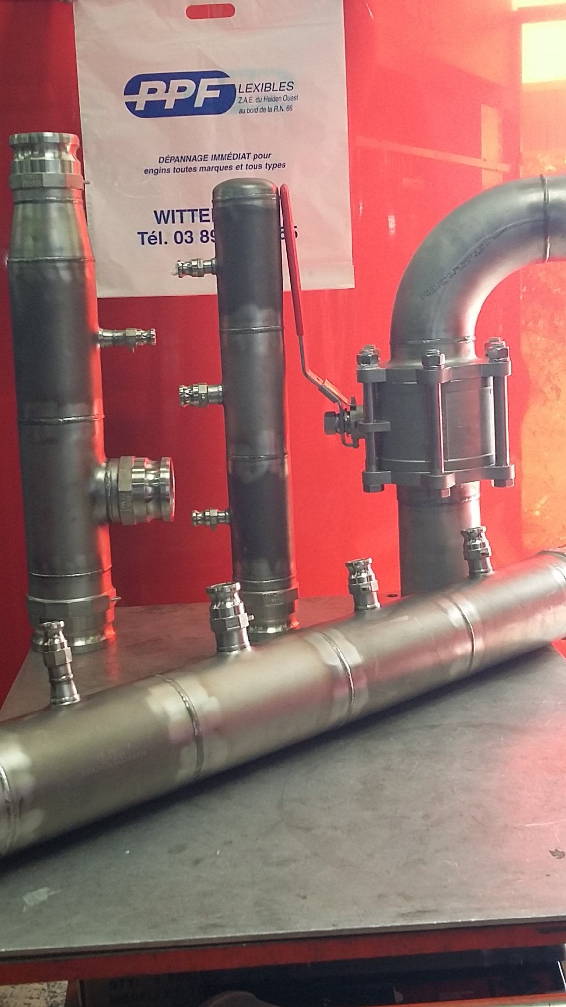 Clarinettes réalisées à partir de tubes INOX de différents diamètres, usinés et équipés par soudure TIG de raccords inox.