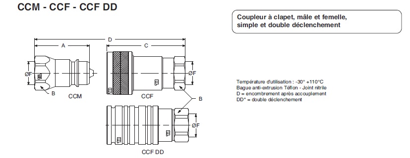 Coupleur à clapet, male et femelle, simple et double déclenchement