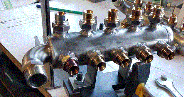 - Confection sur mesure / plan de distributeurs en inox multi sorties avec embouts soudés