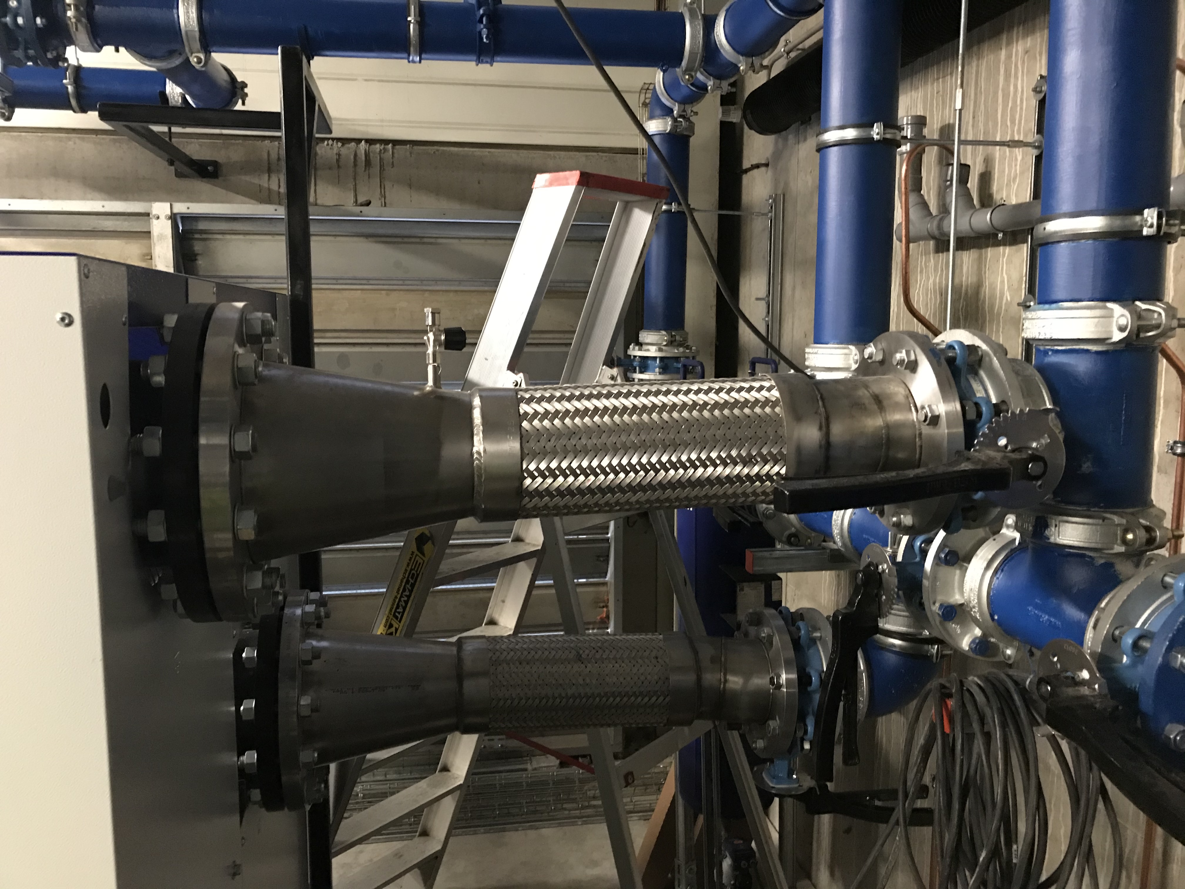 Confectionnés sur plans comportant désaxages bi directionnels, ces flexibles inox sont équipés de brides inox et s'adaptent parfaitement aux désaxages nécessaire au raccordement de la machine.